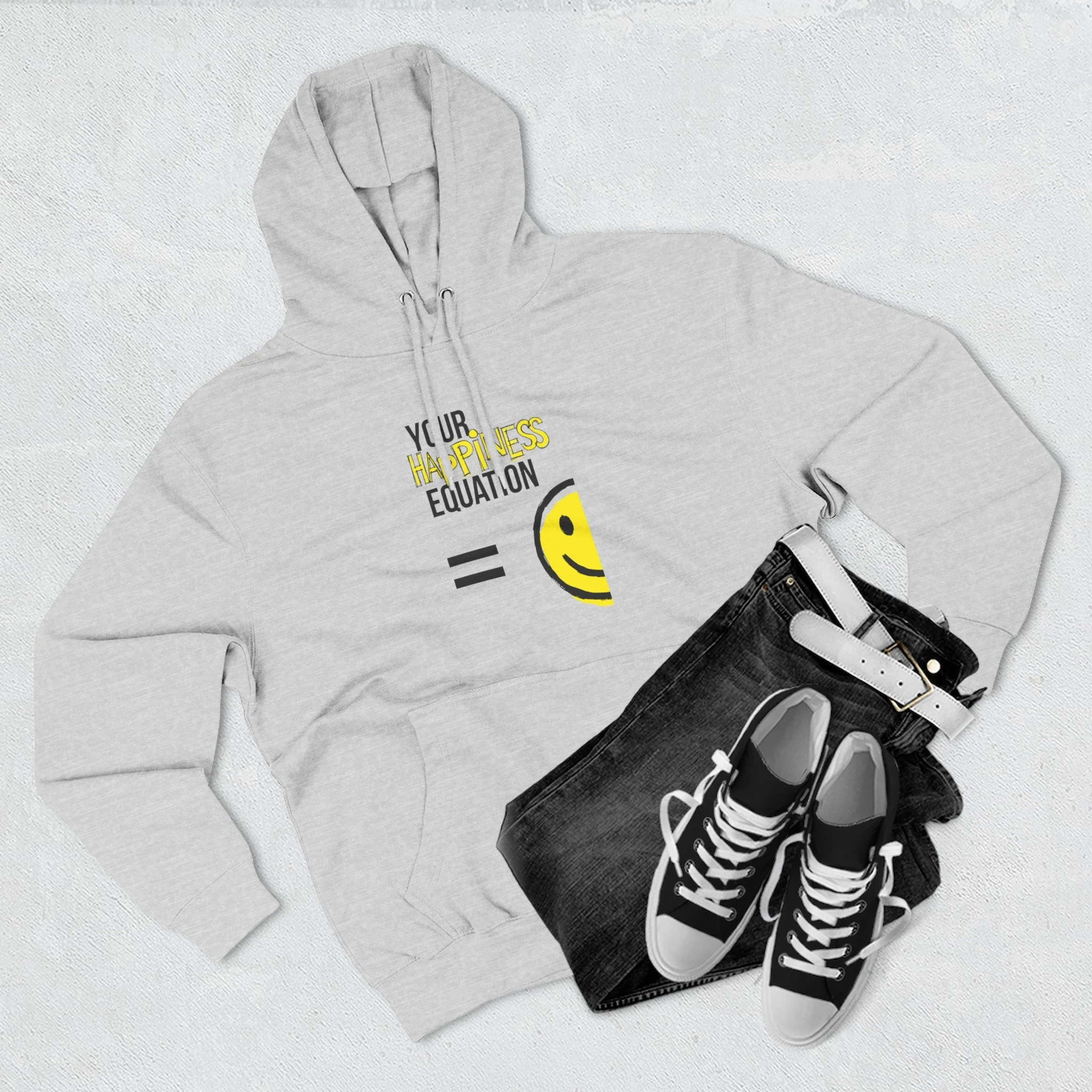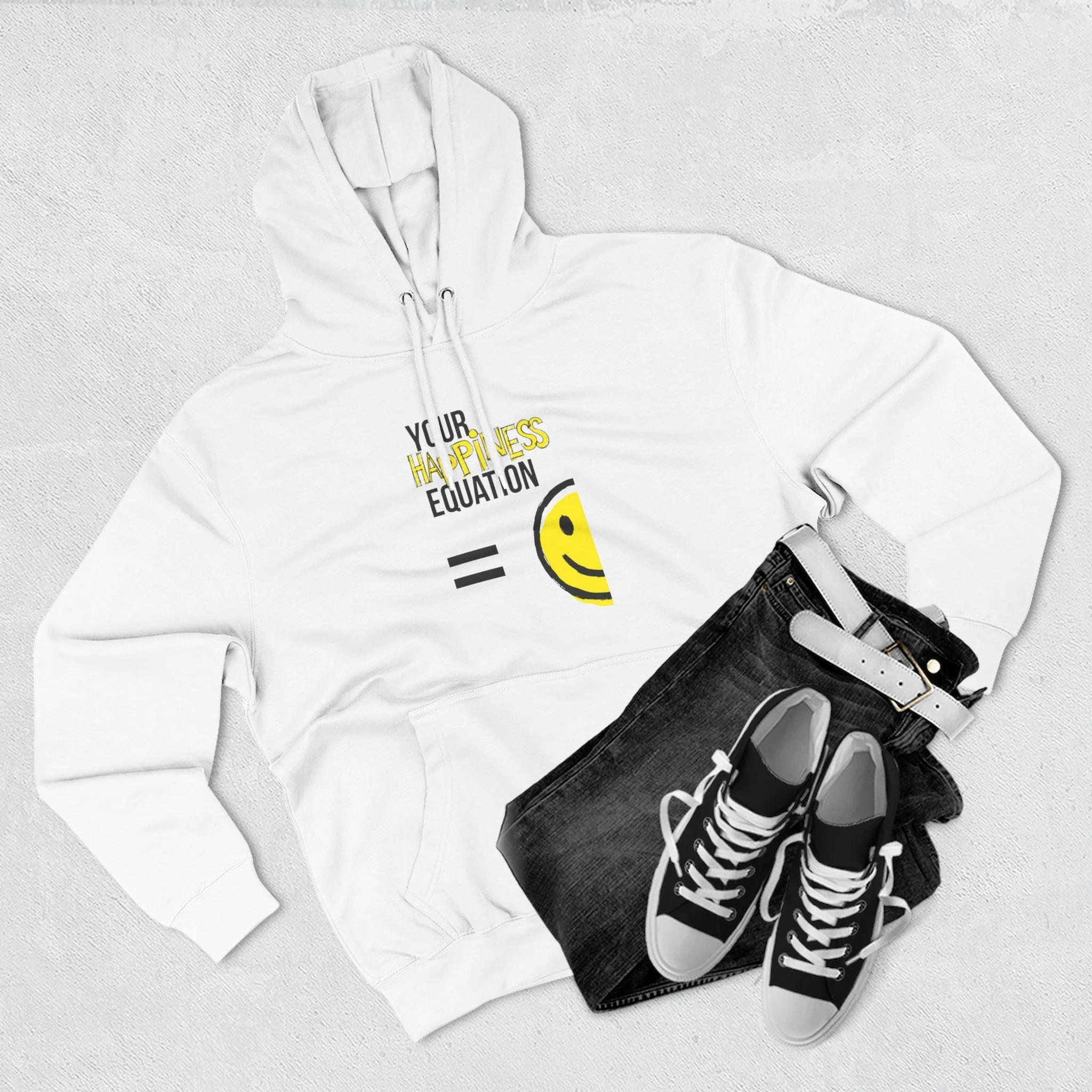 Store Smiley Face Embroidered 5 Panel Trucker Cap $23.99 Happy Equation Fleece Hoodie - Perfect for Positivity and Comfort $59.99 Your Happiness Equation Unisex Classic Tee - Positive Vibes T-Shirt $19.99 Color Blast Unisex T-Shirt - 'Your Happiness Equation' $33.99 Unisex HD Cotton™ T-shirt - Your Happiness Equation Graphic Tee $24.99 Unisex Color Blast T-Shirt - Your Happiness Equation $34.00 Happiness Equation Skinny Tumbler with Straw - 20oz Motivational Drinkware $26.99